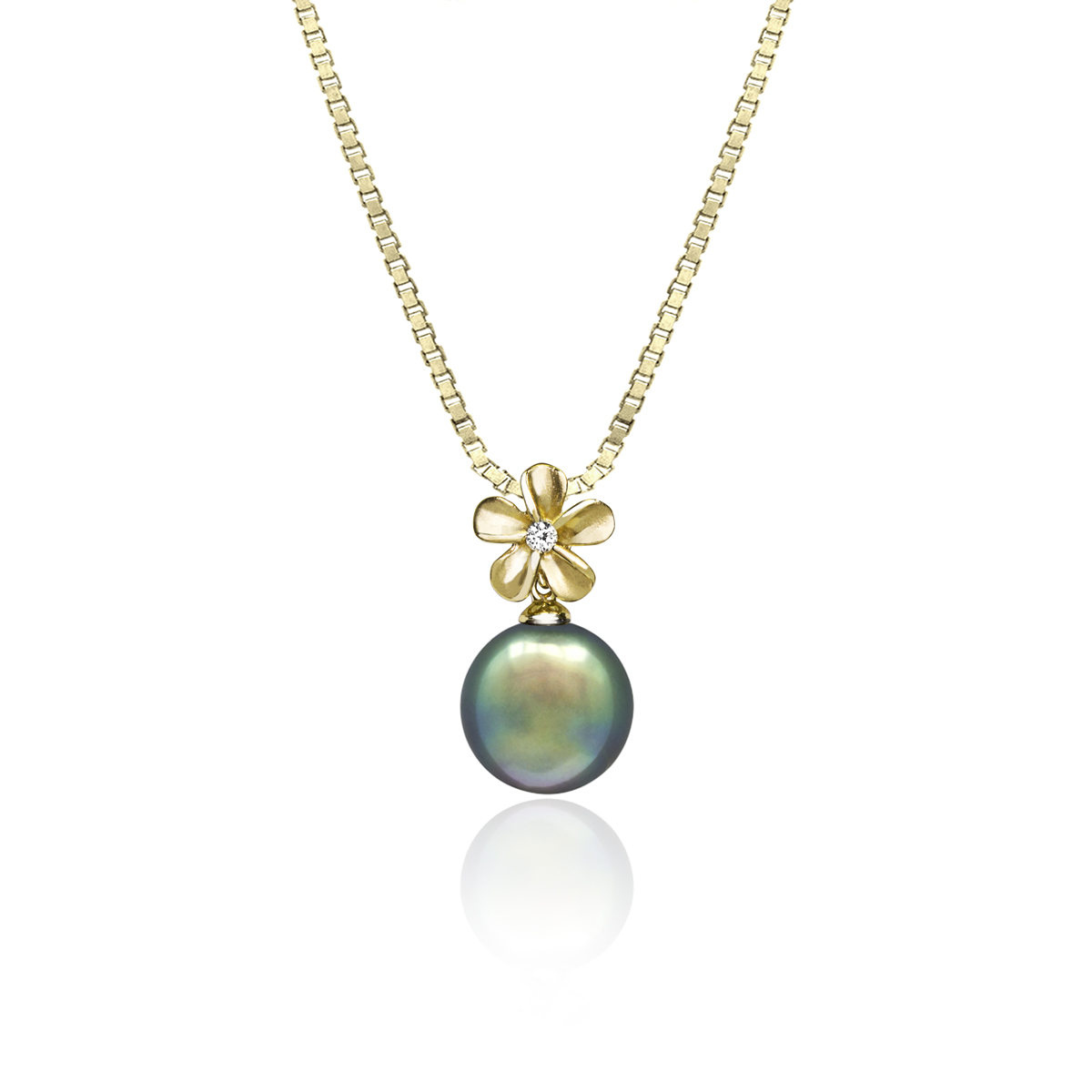 3/8″(9mm) Tahitian Peacock pearl with plumeria flower