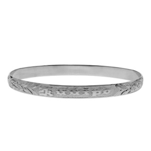 Sterling Silver 6mm heavy weight bracelet, size 7.5 "MAILE" design with a smooth border. "Lauren Leigh" will be on the outside of the bracelet in raised lettering. The inside engraving will read: "I LUV YOU LIL SISTER, JULIALIN"