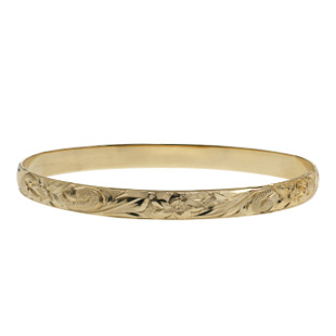 14K Yellow Gold 6mm medium weight bracelet, size 7.5 "MAILE" design with no edge. There will be no lettering on the outside of this bracelet.
